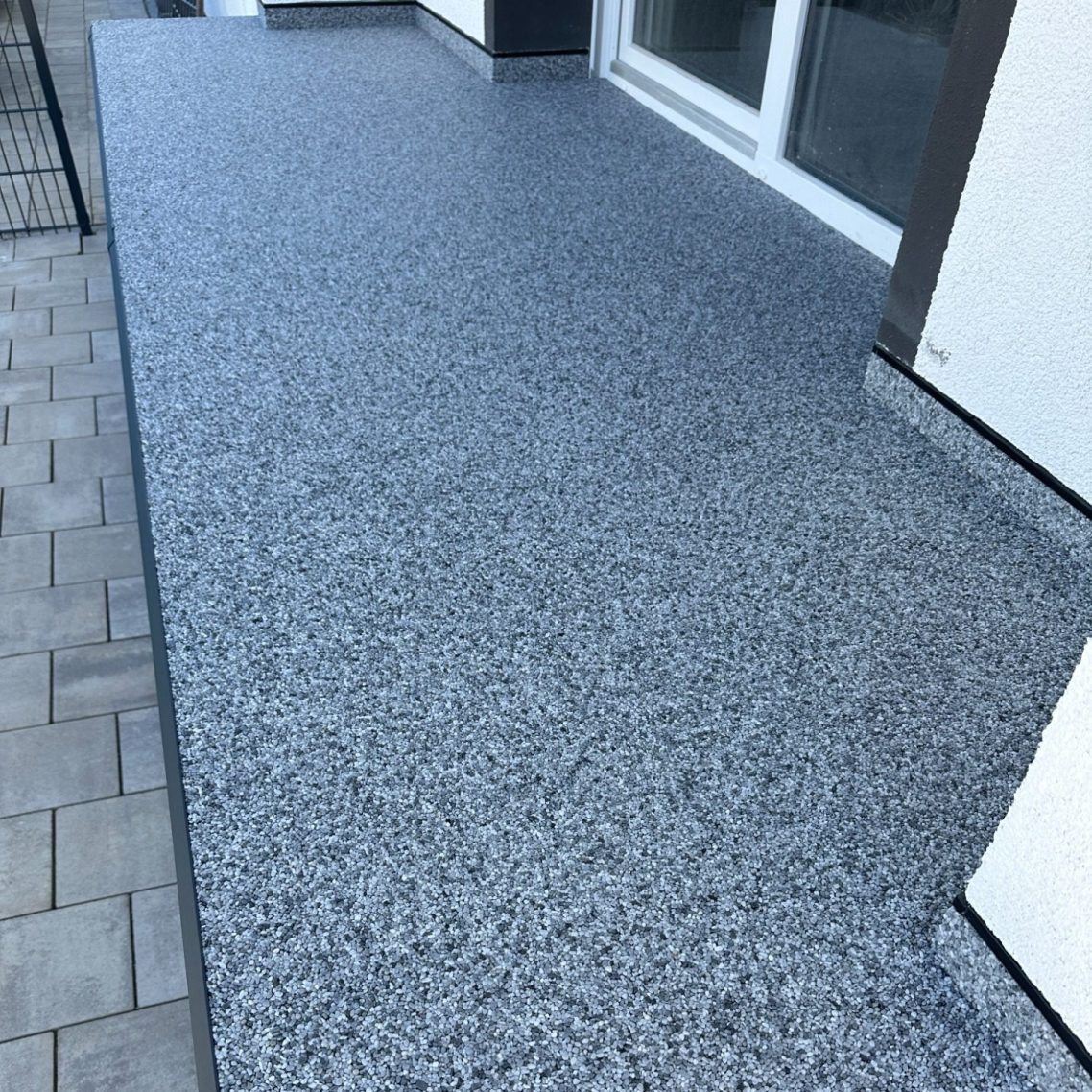 Ein Steinteppich wirkt hochwertig und hält im Alltag stand, welcher sich besonders für Treppen, Eingangsbereiche, Terrassen und Balkonen eignet. Mit verschiedenen Körnungen und Farbmischungen lässt sich der Boden optisch genau an das Objekt anpassen.